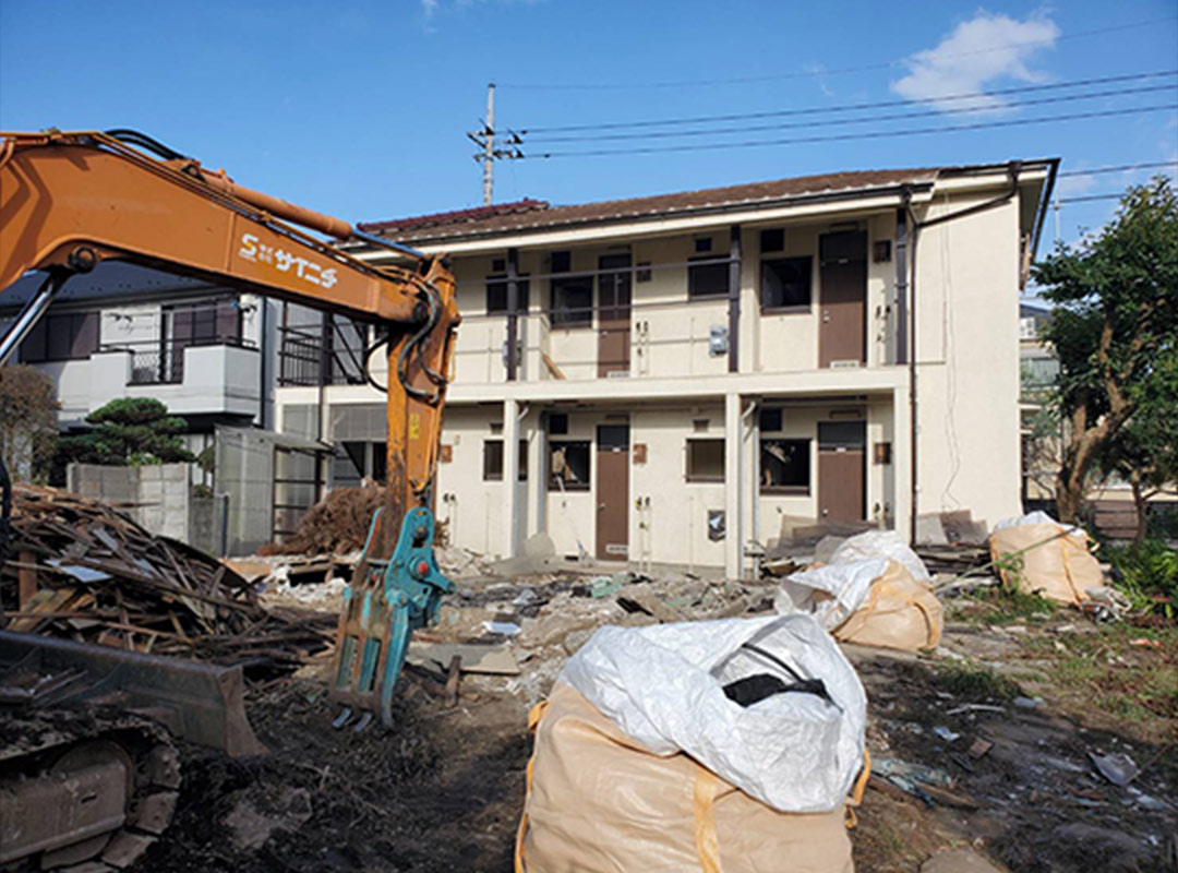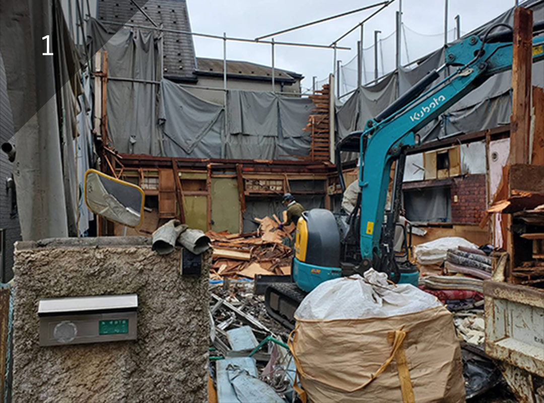 防音シートを設置したり、音の小さい解体機器を使用するなどして、出来るだけ騒音が出ないよう配慮しています。